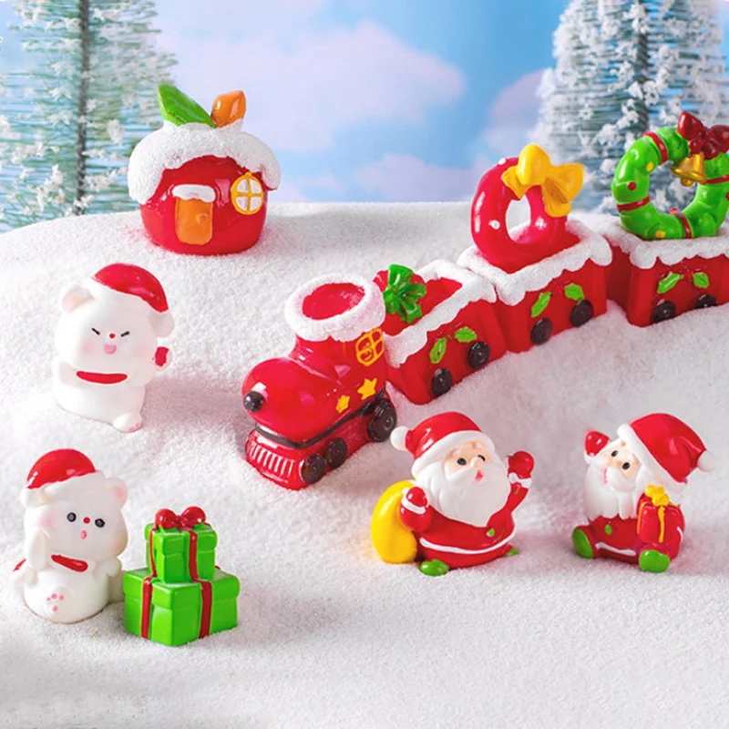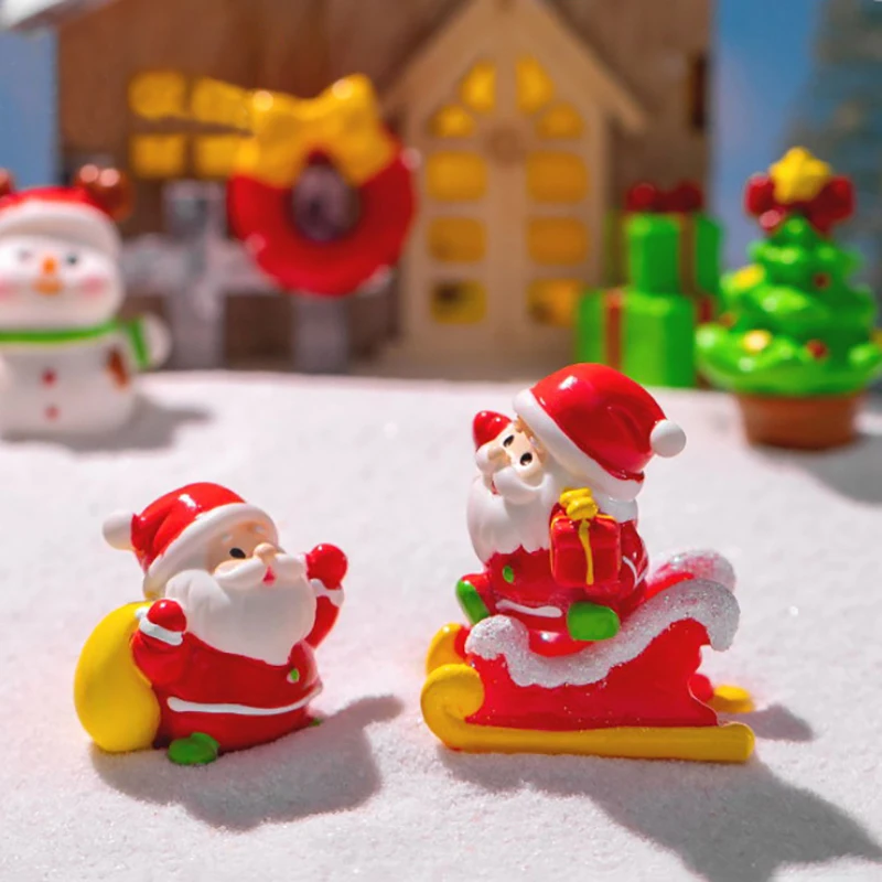 1pc Mini Resin Christmas Santa Claus Snowman Ornament Micro Landscape Christmas Decorations Ornament Home Desktop Park Decor
