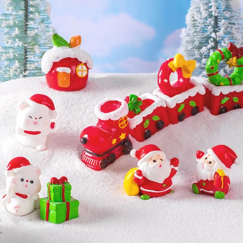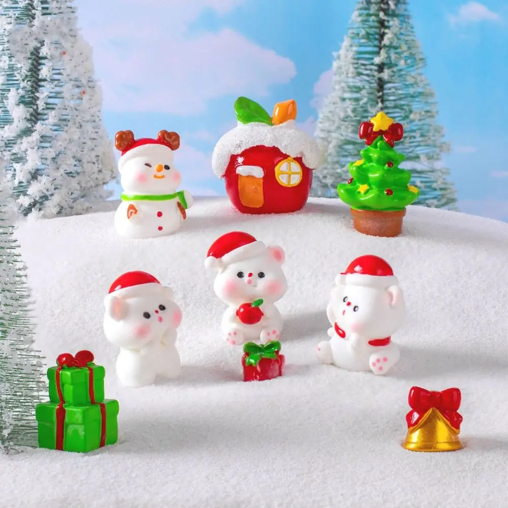 Mini Christmas Figurines Santa Clause Resin Miniature Knick-knacks Micro Landscape Home Decorations Cartoon Snowman Statue